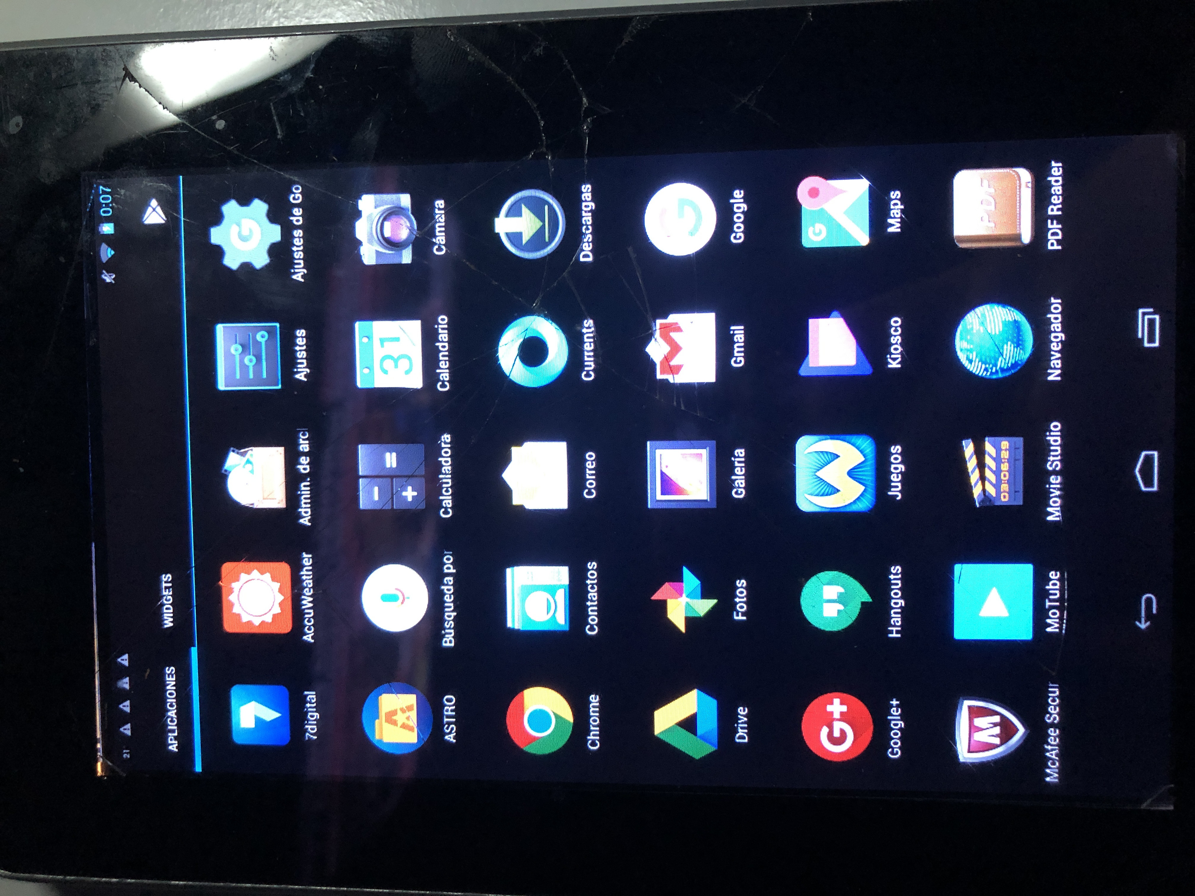 Tablet de segunda generación, 5gb de memoria expansible con tarjeta SD. Anda impecable, tiene astillada la pantalla pero no le afecta en absoluto